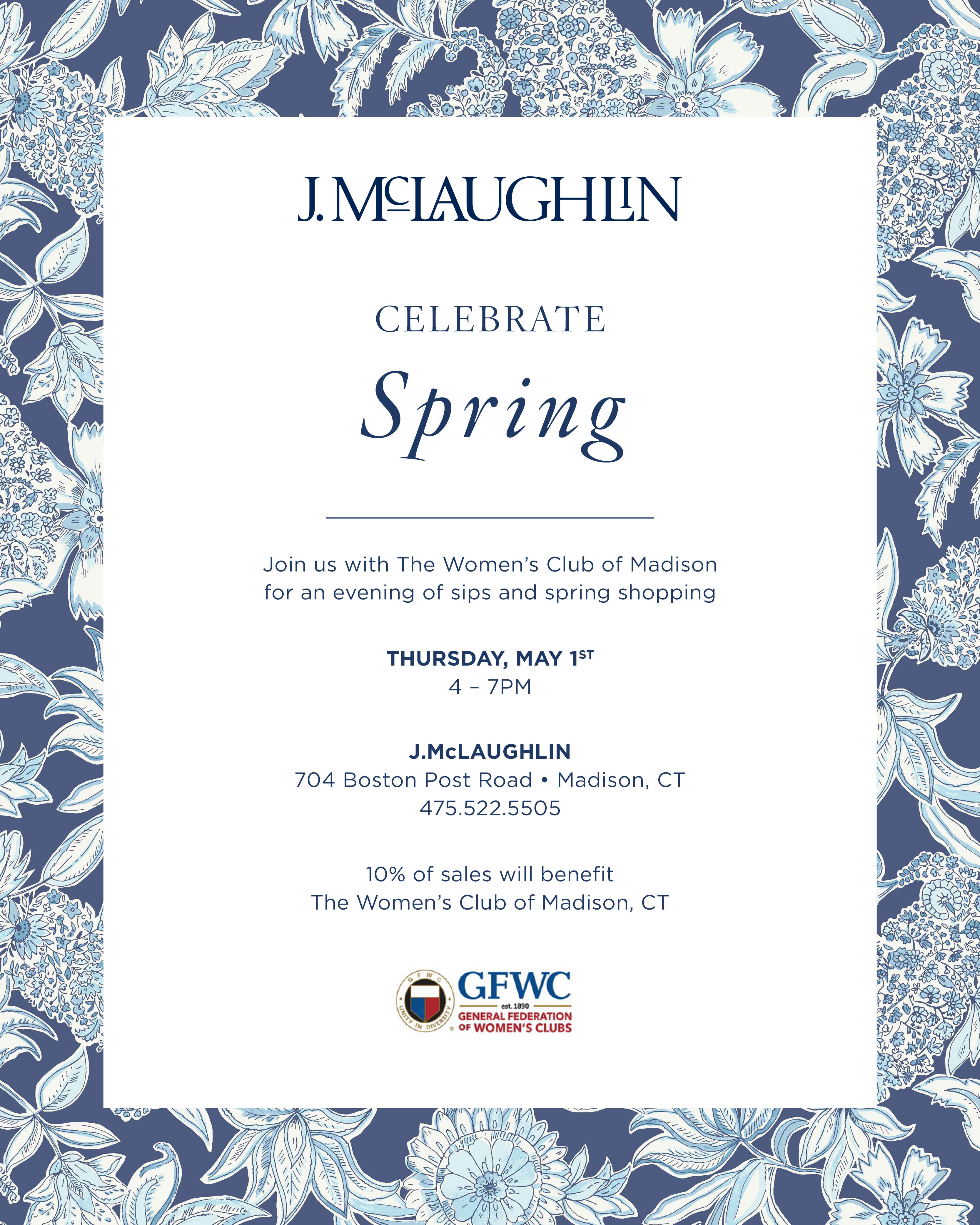 Join us for an evening of sips and shopping. 10% of all sales will benefit the Women’s Club of Madison.