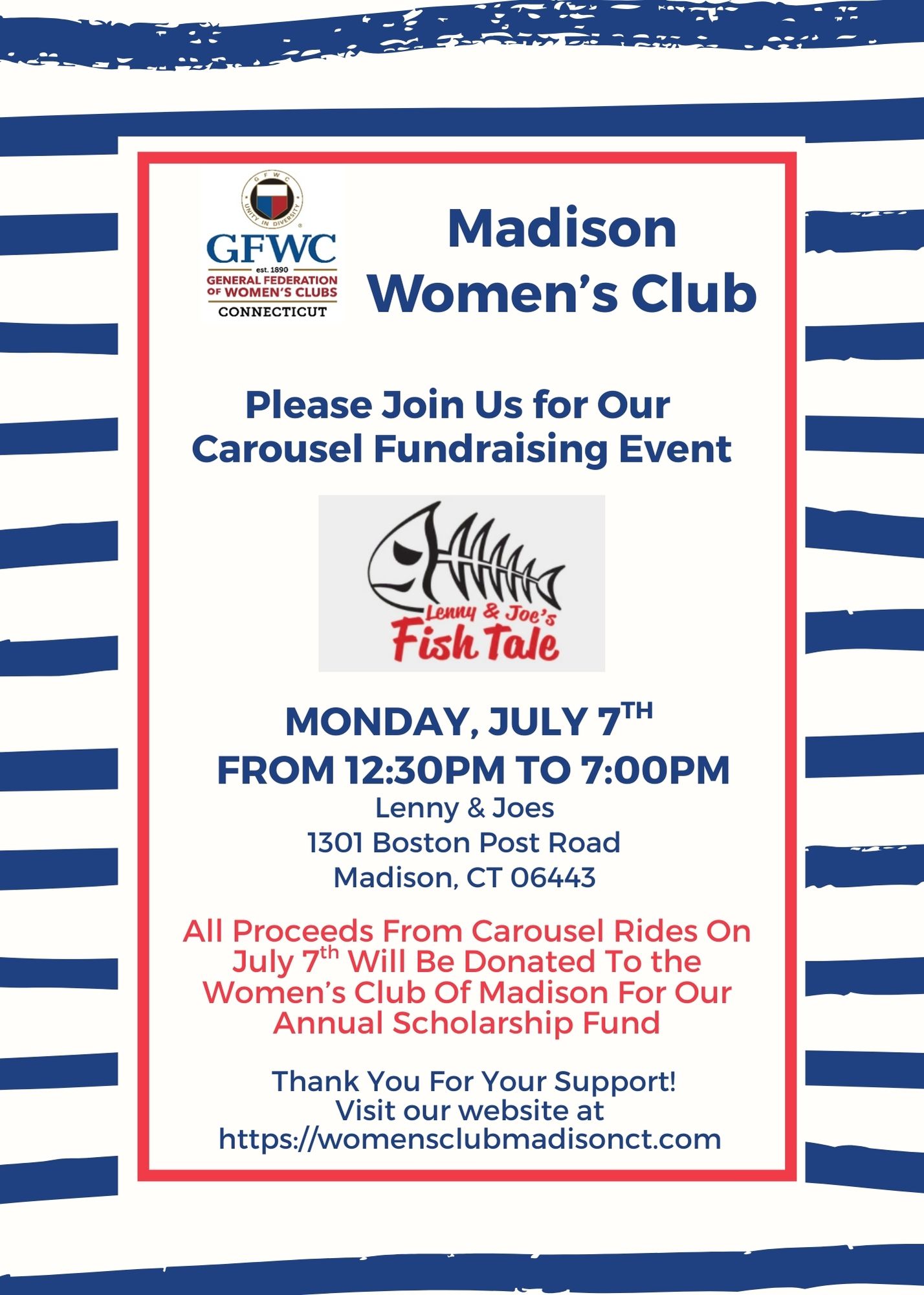 Come visit us at Lenny and Joe’s where all proceeds from carousel rides will be donated to our club, to benefit our scholarship fund.